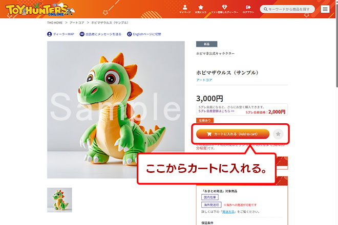 - 欲しい商品を見つけ、カートに入れます。 商品によっては、「おまとめ発送」か「通常発送」かを選んでいただく必要があります。