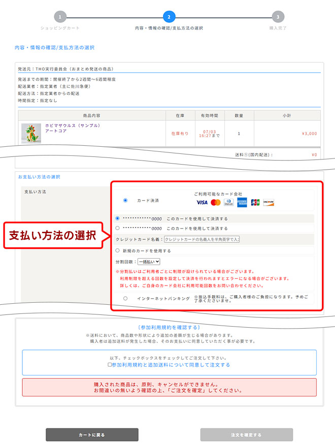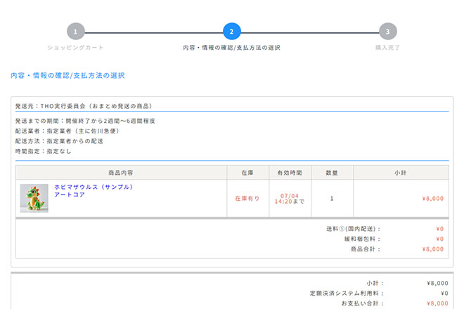 購入代金はTHO実行委員会が一時的にお預かりし、商品が届いてから出品者へ支払う仕組み になっています。