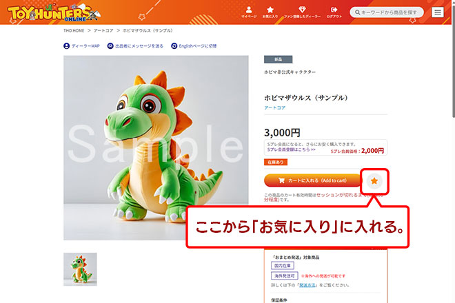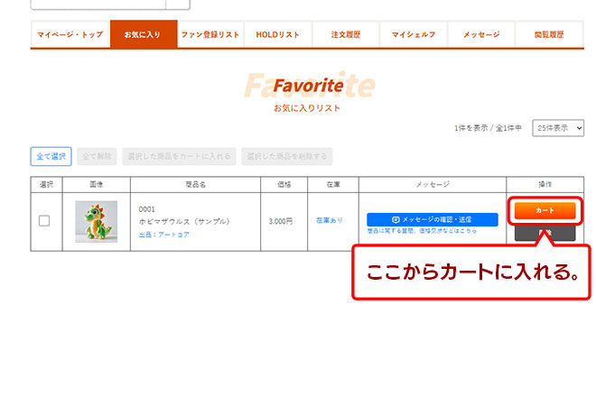 商品をカートに入れる方法は、大きく分けて「商品ページ」からと「お気に入り」からの2通りがあります。