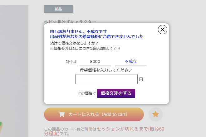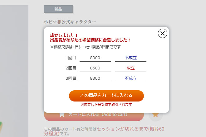 ①の 「自動値引き」 により成立した場合は、そのままカートに入れて購入ができますが、