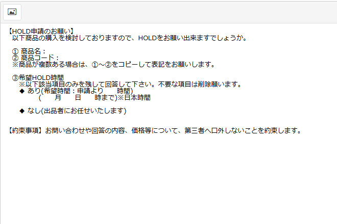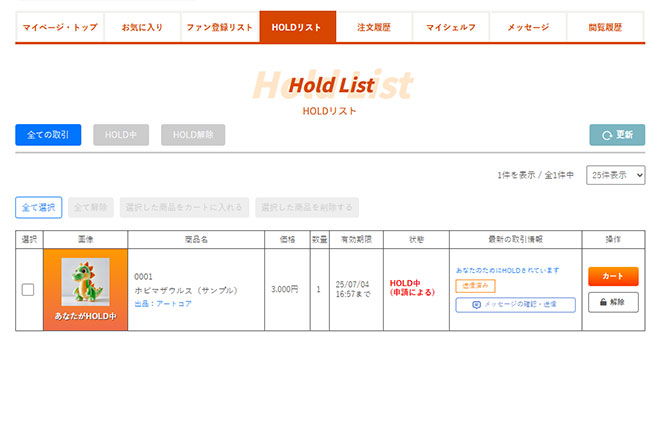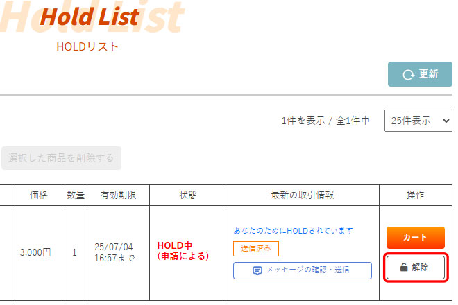 - 商品は有効期限まであなたの為にHOLD(取り置き)されています