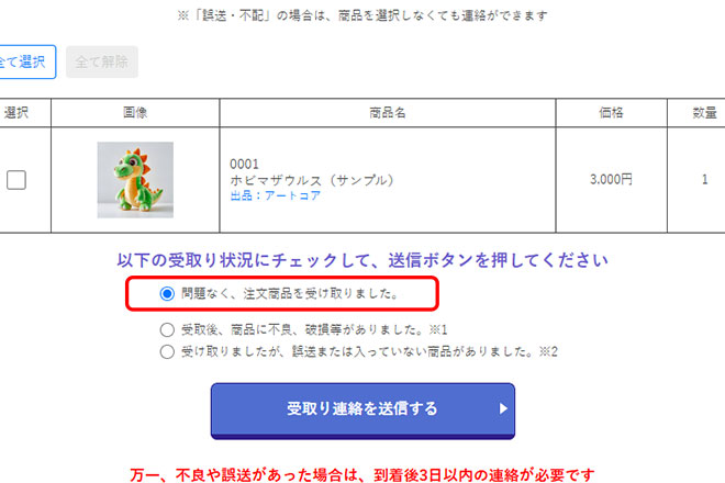 もし 「商品が届かない」 または 「写真と違う商品が届いた」 といったトラブルが発生した場合でも、 実行委員会が購入者様に返金対応 いたします。